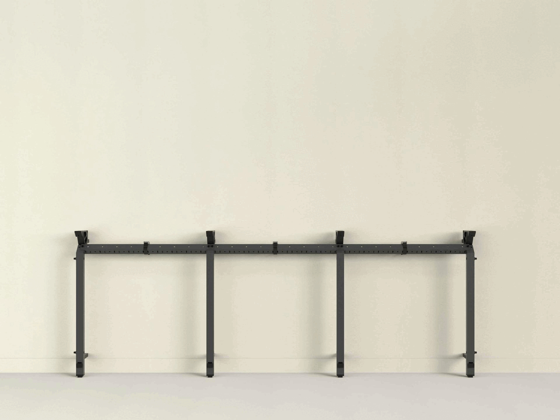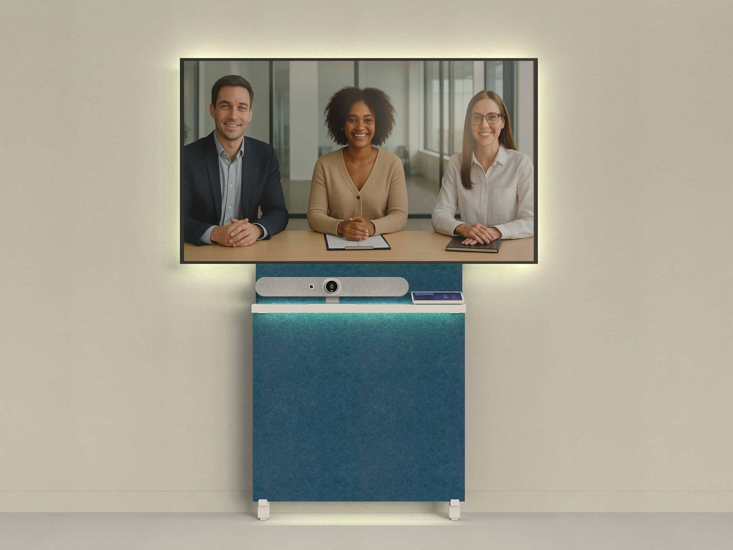 The innovation lies in its simplicity: the entire structure is derived from just three components — legs, beams, and columns. These parts assemble quickly to form an ultra-stable, floor-supported structure that accommodates any display size, any number of displays or cameras, and any combination of collaboration gear.