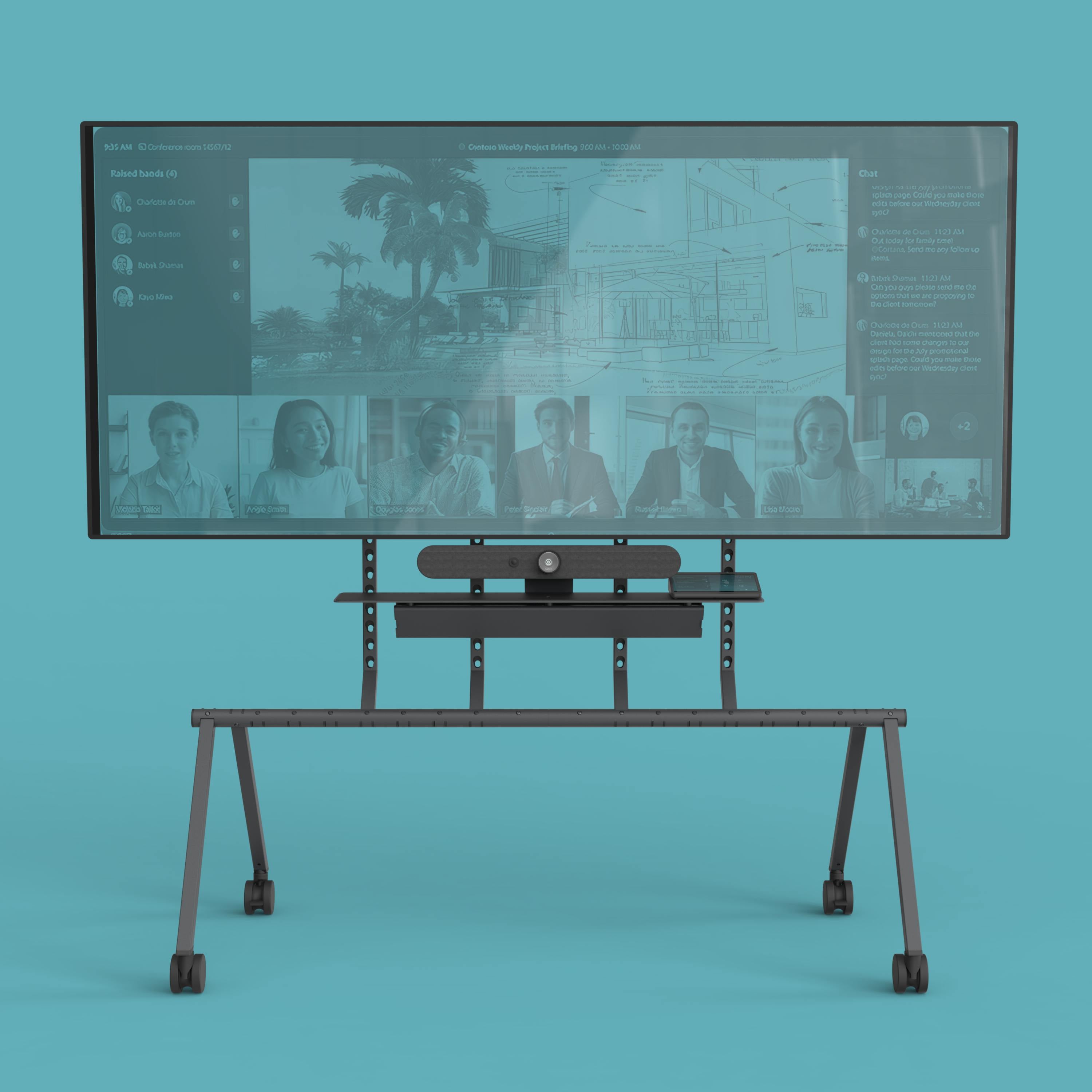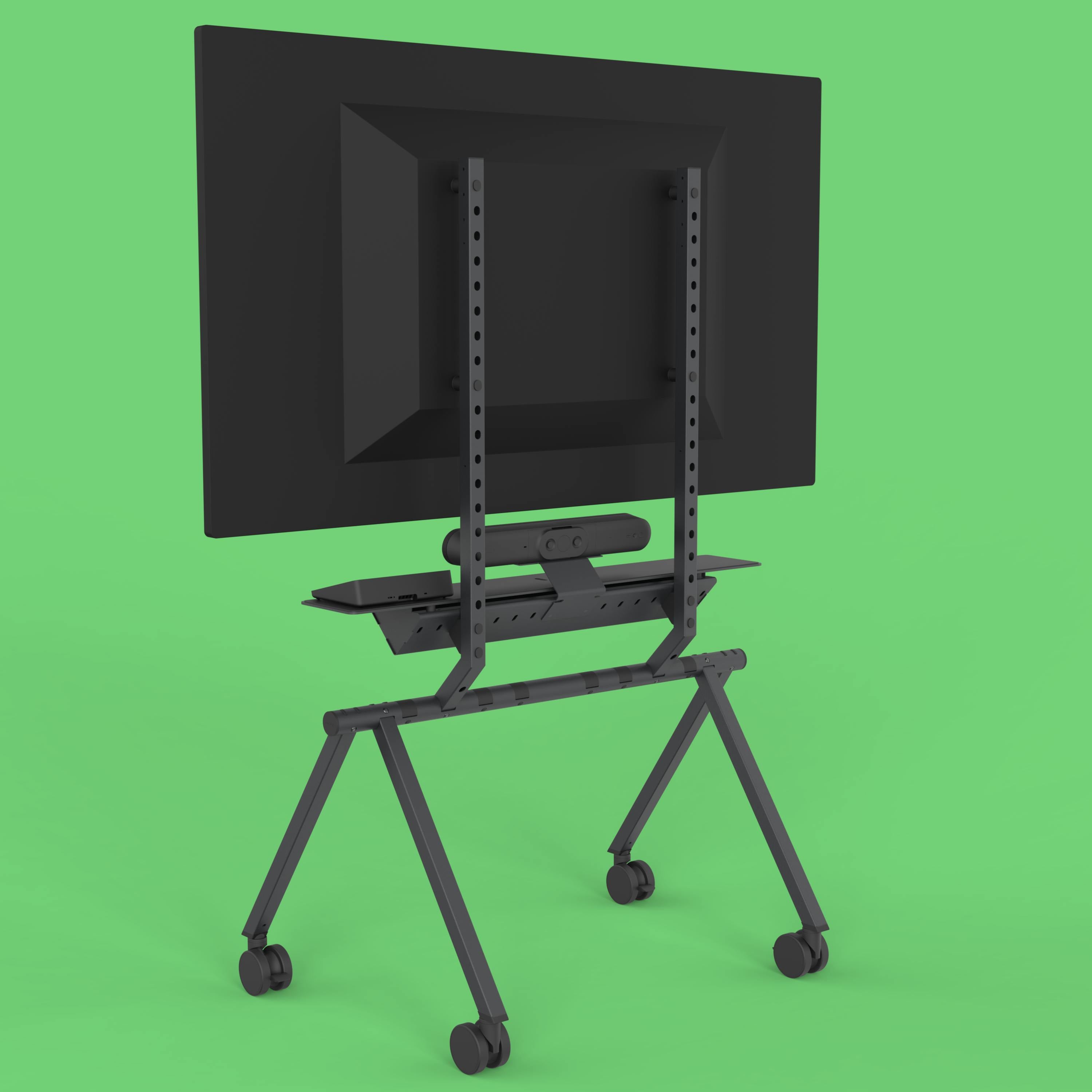 The Heckler Mobile Fleet is designed to empower businesses to seamlessly deploy large screens throughout their spaces. Some stands in the fleet feature video meeting appliance mounting above and below your display, small device storage, cabling storage, and cord wraps.