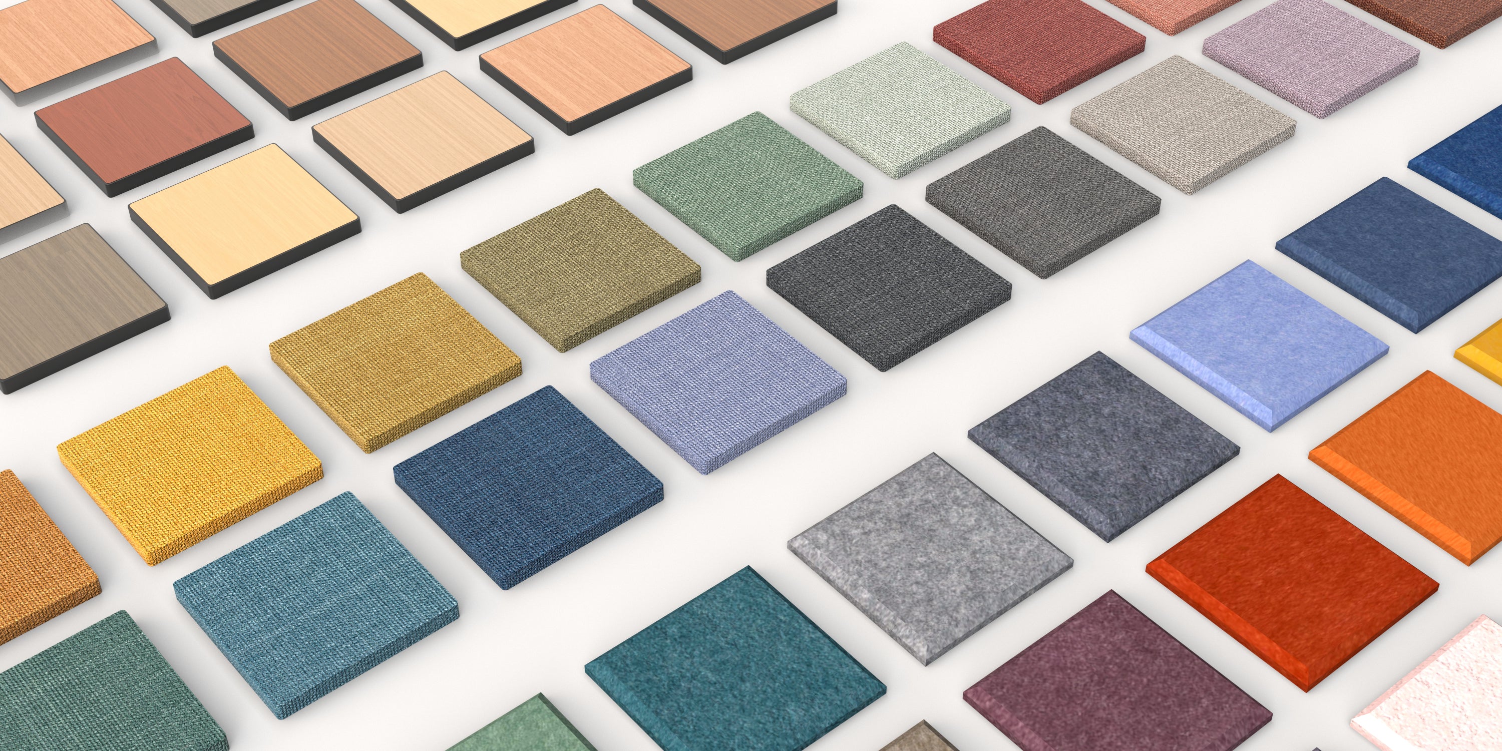 Felt Right panels come in 42 colors, absorb 35% of reflected sound, and use 50% recycled PET. Maharam Metaphor textile panels offer premium, contract-grade performance—with 5 stocked colors and 40+ special order options. Wood-look panels feature textured grains and matte finishes, with custom species available to match existing millwork.