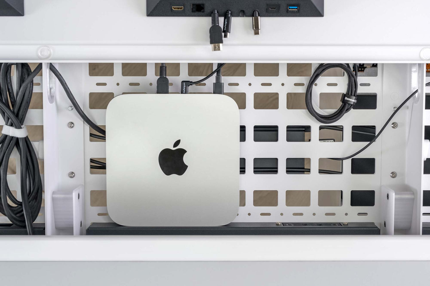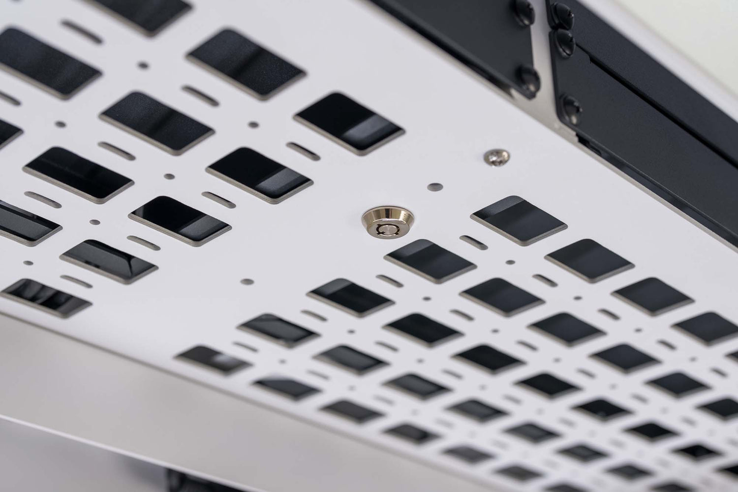 Our unique grid system allows you to route cabling precisely, organize surplus cabling, pass cables into and out of the lectern enclosure, and secure small components in place - all without the need for tools, hardware fasteners, or fiddly plastic parts. Additionally, the grid provides ample passive airflow within the enclosed space, reducing the need for exhaust fans.