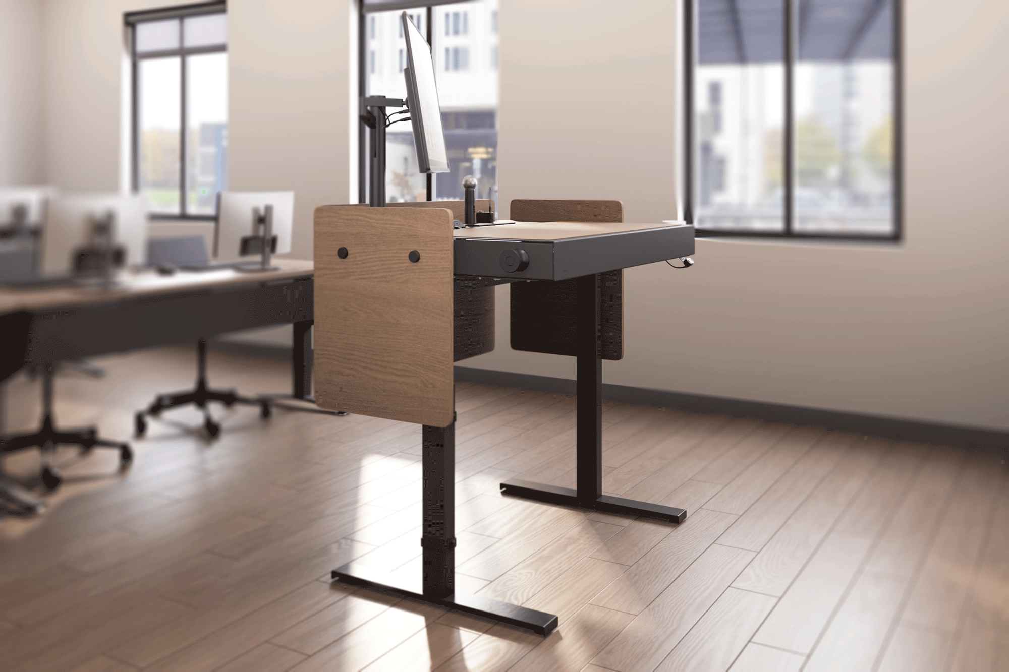 The Heckler Lectern is designed for flexibility, accommodating third-party sit/stand cabling umbilicals and facilitating the integration of existing cable setups to suit various environments.