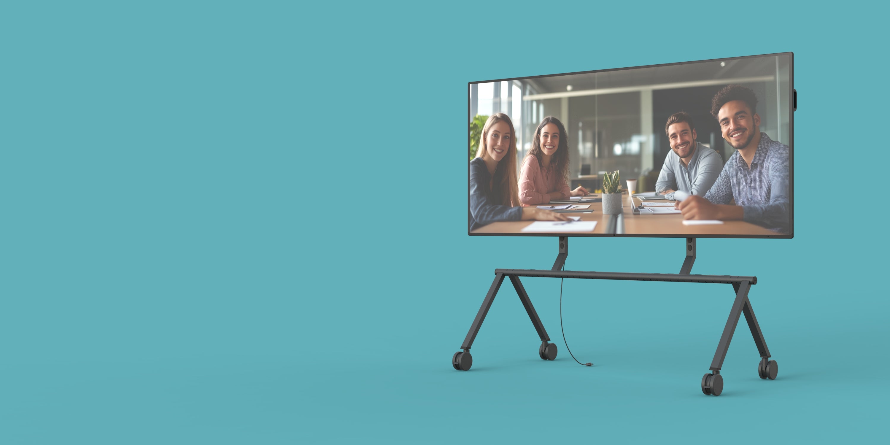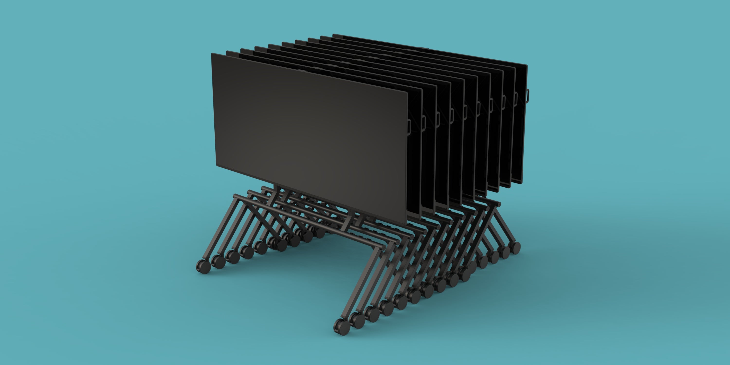 When not in use, multiple stands can be stacked together more compact than any other rolling stand, freeing up valuable floor space. Perfect for event venues, all‑hands meetings, and organizations that share their largest displays throughout the workspace.
