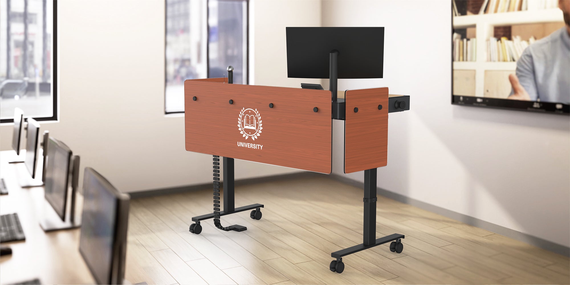 Make your lectern distinctly yours. We offer logo customization services to integrate your organization’s visual identity directly into the modesty panel design.
