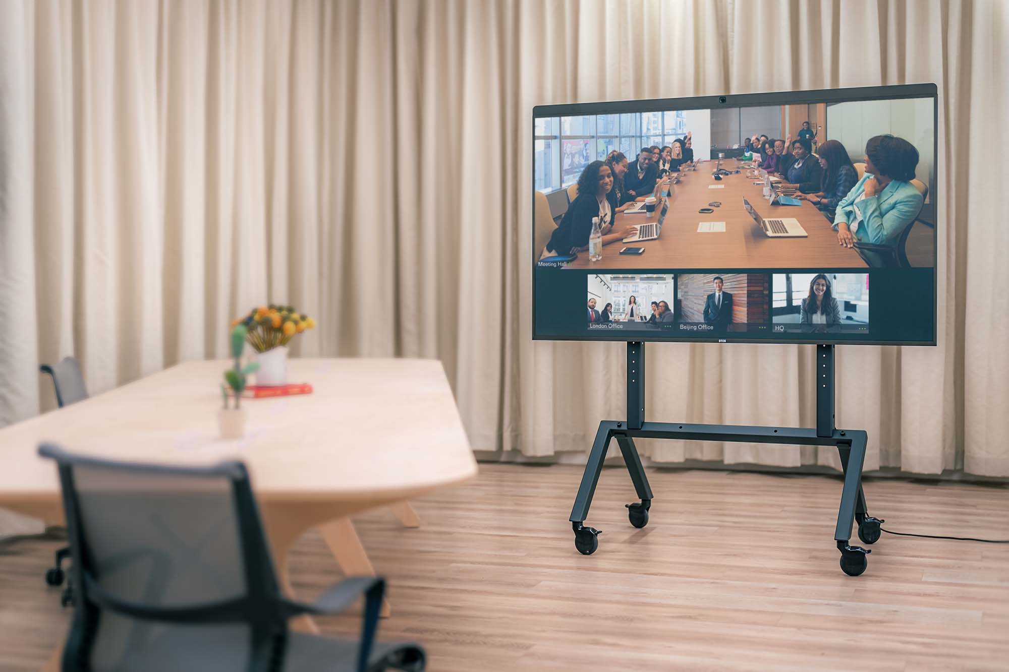 Commercial-grade rolling stand for the DTEN D7 and D7X 75 all-in-one collaboration display