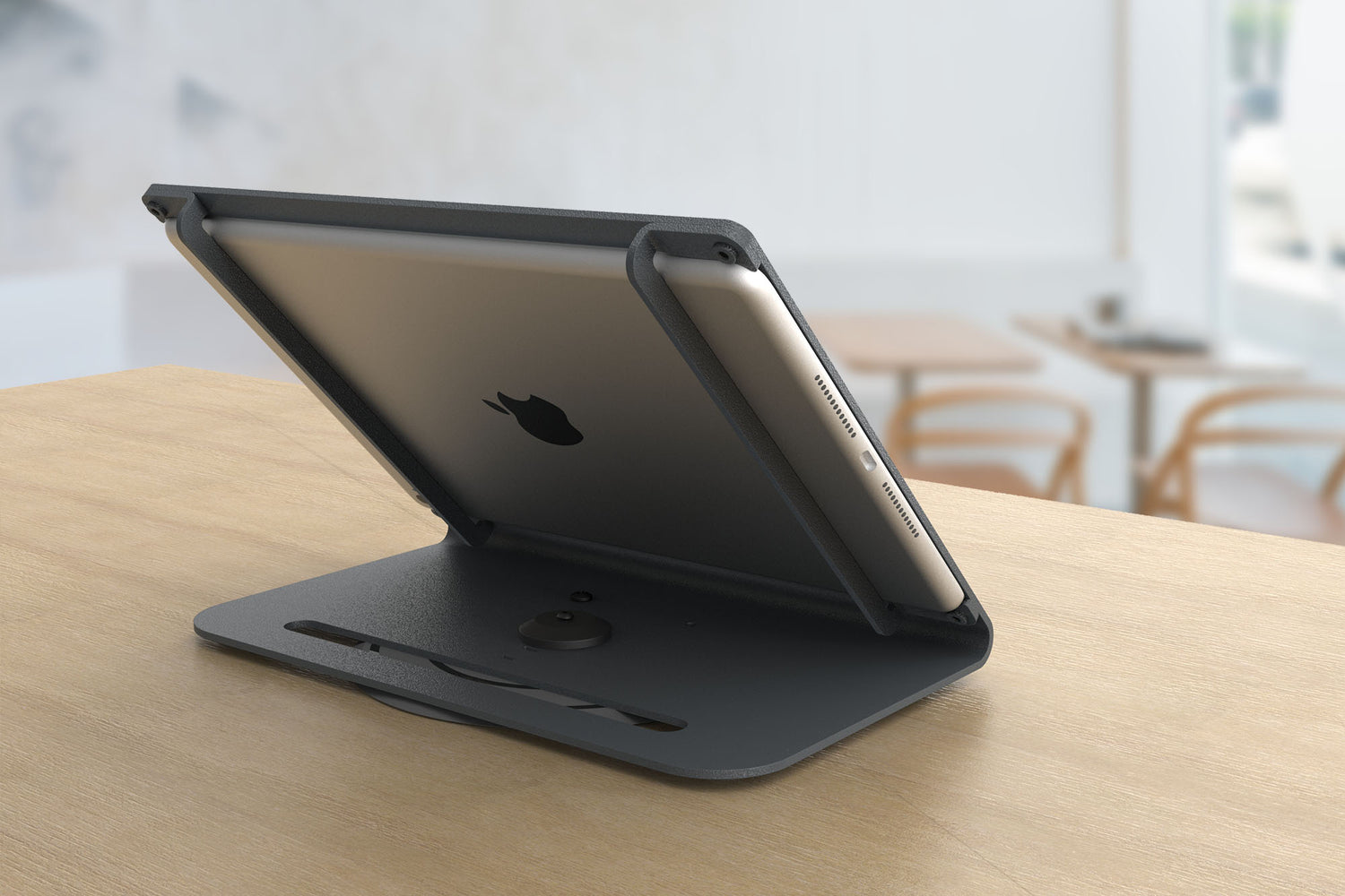 Compatible with our PivotTable or PivotTack (sold separately) in the center hole for easy swiveling, letting your customer get access to the tablet during transactions.