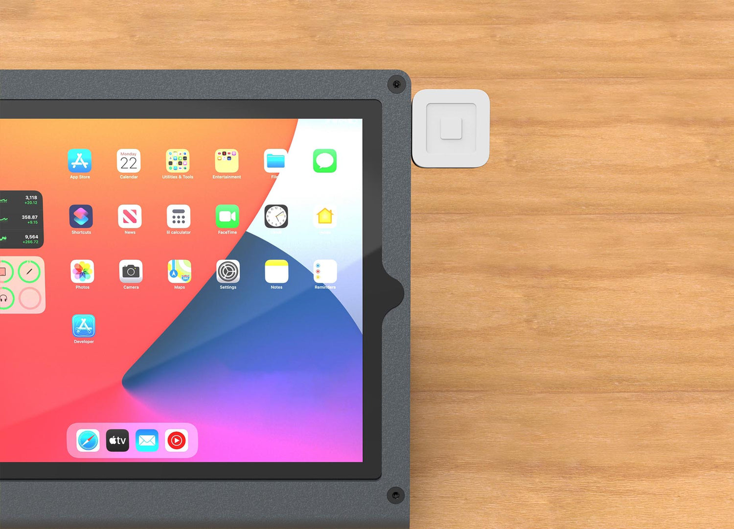 With WindFall Stand Prime iPad holder, we’ve made our patented WindFall iPad Stand even better with enhanced security and broader card reader support. This is the perfect, modern iPad stand for your business or shop. PivotTable sold separately.