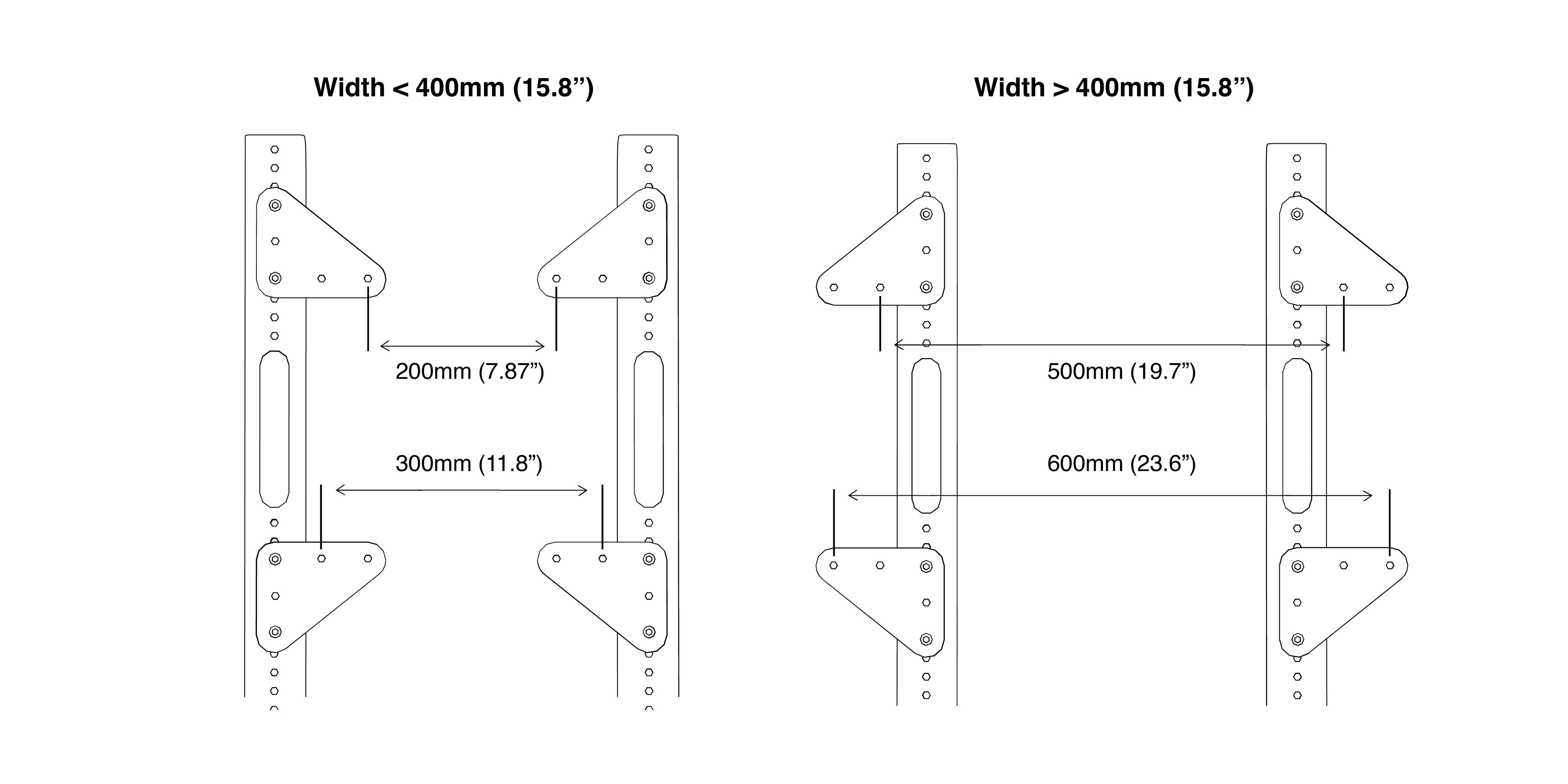 Want to use Heckler AV Cart, but your display does not have a VESA 400x400 mounting pattern? No problem. These strong, simple adapters do the trick. With these adapters, you can mount displays with a horizontal and vertical mounting hole spacing of 200, 300, 500, and 600 millimeters. Not compatible with Dual Display Kit for Heckler AV Cart.